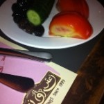 They always serve a plate of cucumbers, tomatoes and olives: I don't count the vegetables, but I took around 10 black olives: 50 calories